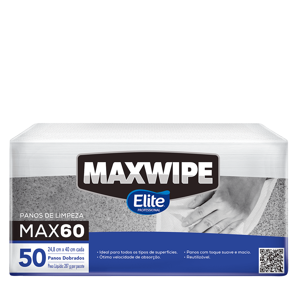 MAX60 DOBRADO é um pano com alta velocidade de absorção, sendo ideal para uma limpeza moderada e para áreas de menor frequência de fluxo.