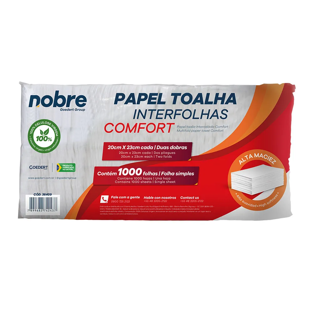 PAPEL TOALHA INTERFOLHAS CONFORT 20X23 100% CELULOSE - 1000 FOLHAS