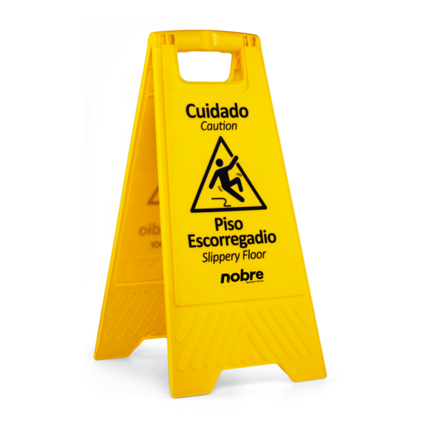 Placa Sinalizadora - Piso Escorregadio - Nobre Referência: 31273 Descrição: As placas de sinalização tem por seu objetivo alertar e prevenir acidentes em áreas de risco. As placas Dobráveis são recomendadas para sinalização de situações temporárias como limpeza em banheiros, manutenção de elevadores, onde o risco não é permanente, e há constante realocação. Em polipropileno (PP), possui indicação de situação de perigo em dois idiomas (português e inglês). Placas: Piso escorregadio Com alça. Cor: Amarelo 1 unidade