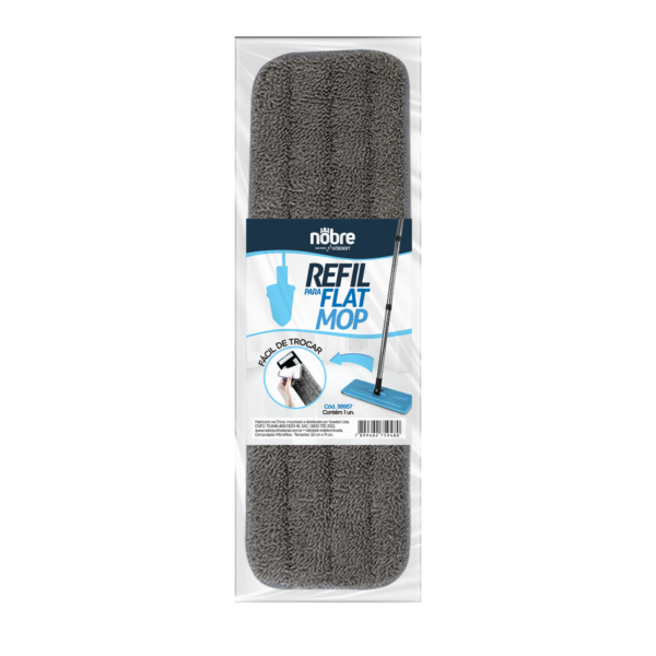 Refil compatível com Mop Flat da Nobre O Refil do Mop Flat Nobre é um produto bem macio, produzido em pano microfibra que não risca, nem danifica seu piso. Ideal para limpar superfícies delicadas como pisos de cerâmica, janelas, objetos de vidro, etc; Além disso, realizar a troca do refil é bem simples. Medidas aproximadas do refil: (Comprimento, largura e altura): 32x11x1 cm Composição: Microfibra Marca: Nobre Cor: Cinza